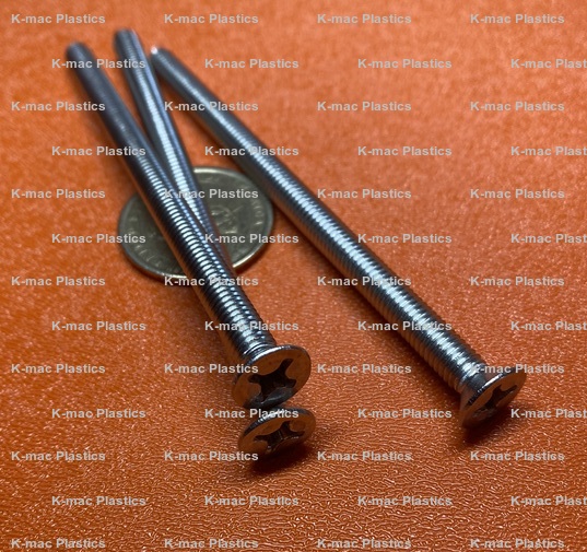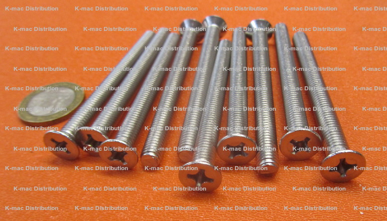 Machine Screws - Metric Flat Head Phillips Drive, fully threaded, Class 6g, DIN 965, 90° bevel under head.
