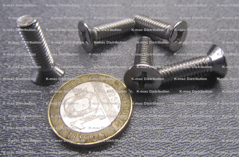 Machine Screws - Metric Flat Head Phillips Drive, Class 6g, DIN 965, Fully Threaded, 90° Bevel under the head.
