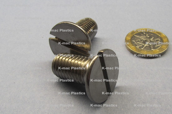 Machine Screws - Metric Flat Head Slotted Drive, Class 6g, DIN 963, Fully Threaded, 90° Bevel under head.