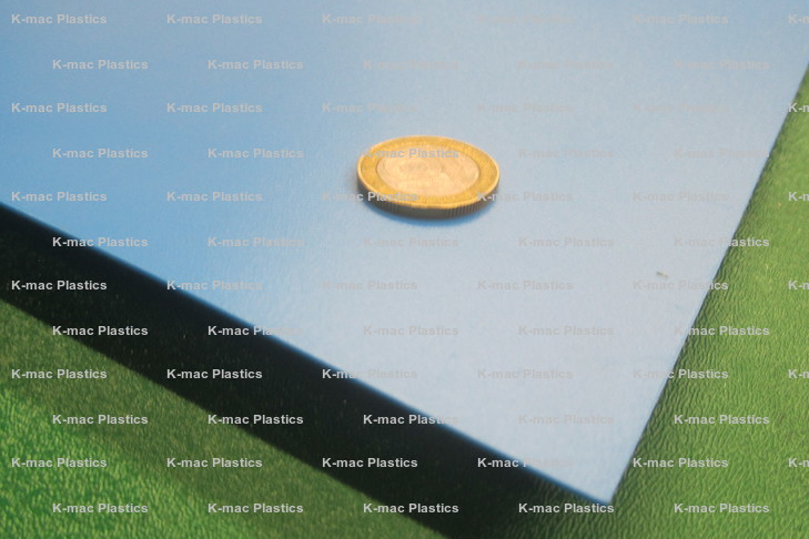 Colored HDPE sheets have Matte textured surfaces on both sides. .015" to .055" have soft matte textures. .075" - .090" have heavy Matte Textures.