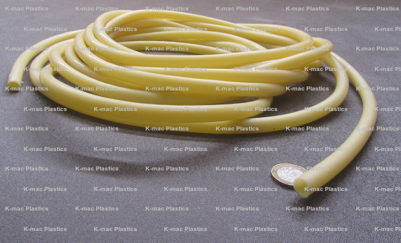 This soft natural rubber is extremely flexible yet returns to its relaxed shape. It's smooth and resistant to abrasion, weak acids, and alkalies. Autoclavable. Not rated for bend radius.
